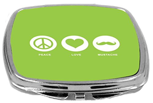 Rikki Knight Peace Love Mustache Design Compact Mirror, Lime Green, 2 Ounce