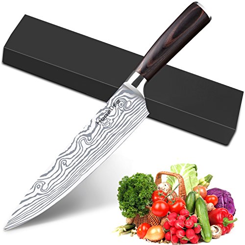 シェフナイフは素敵なギフトボックスに入っていて、友達と両親に贈り物として非常に適しています。 更に、カバーを付きます。使用しない場合にはカバーを覆うと危険が及ばず心配はありません。あなたとあなたの家族、特に子供を守ります。