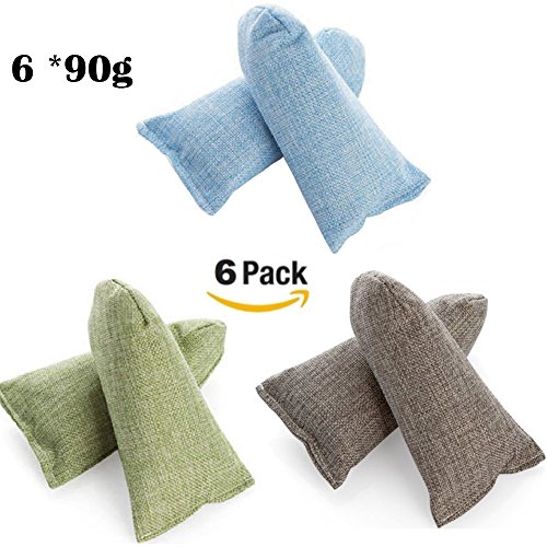 - Super Value 6 Packs -- Size: 3.15 x 7inch/9 x 17cm, 3 Colors:grey,blue,green, Made of linen and filled with bamboo charcoal, Each bag contains 90g Bamboo Charcoals