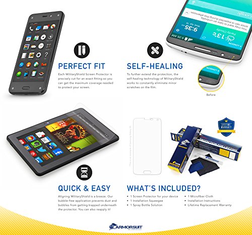 ArmorSuit-MilitaryShield features exceptional clarity and UV protection to prevent yellowing. It is made from the same protective film material used to protect military aircrafts, helicopters and space shuttles. MilitaryShield is also equipped with "self-healing" properties to maximize the protection. The self-healing technology works to constantly eliminate minor scratches on the film. All of our MilitaryShield are uniquely designed to provide a perfect cut for a perfect fit on your device. It also features corrosion and moisture protection to prevent substances from migrating through the film to attack underlying substrates. In addition, it can be protected against damages created from paint, plastics, metals and rock. This package includes: MilitaryShield for your device, application solution, squeegee, micro-fiber cloth, instructions manual and ArmorSuit Lifetime Replacement Warranty.How to Remove the MilitaryShield: