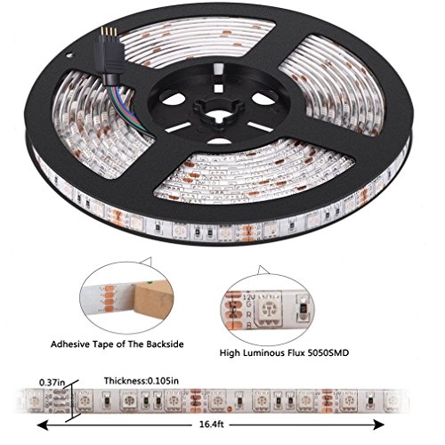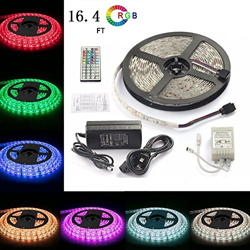 SurSynch Flexible LED Strip Lights Waterproof 16.4Ft/5m RGB LED Lights Strip Kit 5050 Adhesive Light Strips(44Keys Remote Controller+12V 5A Power Adapter included)for Home Bar Party Decoration