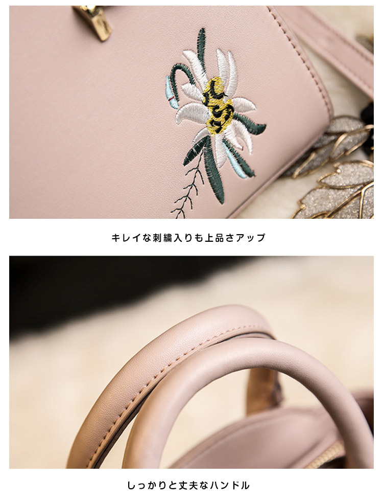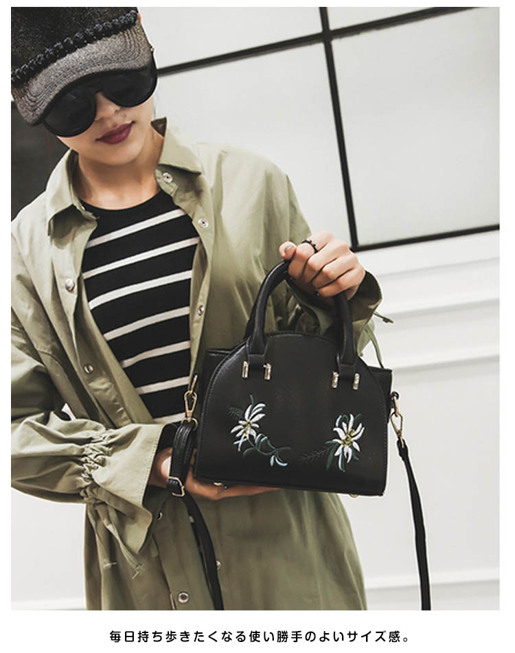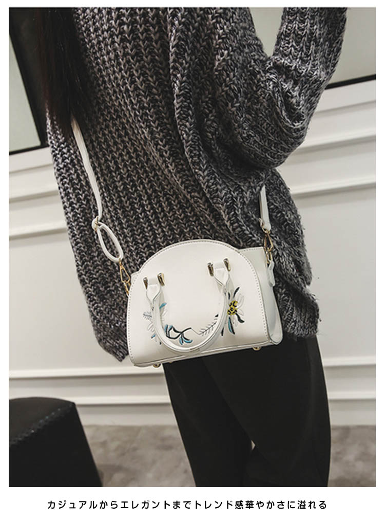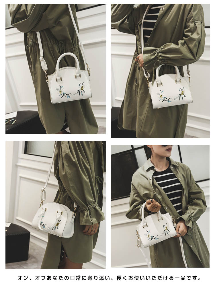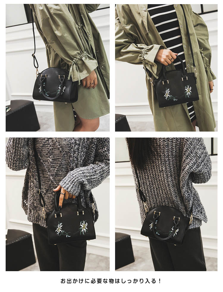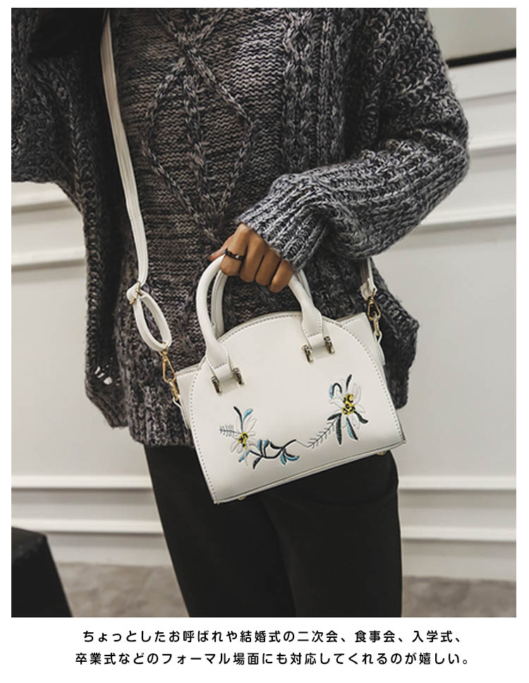 | 上品な印象漂うitem?キレイな刺繍ショルダーバッグが登場!お出かけに必要な物はしっかり入る!毎日持ち歩きたくなる使い勝手のよいサイズ感。オン、オフあなたの日常に寄り添い、長くお使いいただける一品です。ちょっとしたお呼ばれや結婚式の二次会、食事会、入学式、卒業式などのフォーマル場面にも対応してくれるのが嬉しい。カジュアルからエレガントまでトレンド感華やかさに溢れる | |