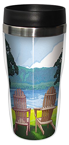 Tree-Free Greetings 78094 Paul A. Lanquist Adirondack Chairs Sip 'N Go Stainless Lined Travel Mug, 16-Ounce