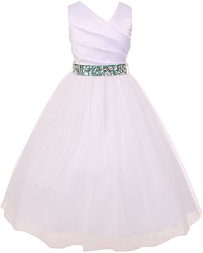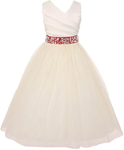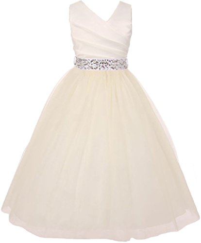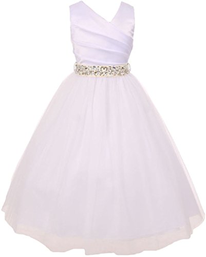 Elegant illusion over satin flowergirldress. Belt comes with rhinestones attached, the belt it self is detachable from the dress.
