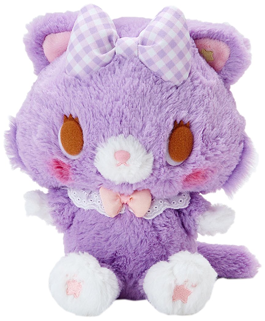 はじめまして。夢見るあなたのぬいぐるみ「みゅー」です。耳の星もようがポイントの淡いすみれ色のこねこ。一緒に眠るとあなたと同じ夢をみるよ。本体サイズ:約16.5×12.5×18cm。主な材料・原料:ポリエステル。(C)2017,2018 SANRIO CO.,LTD.(P)
