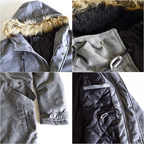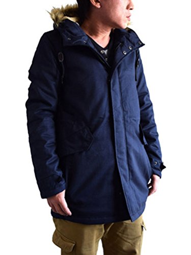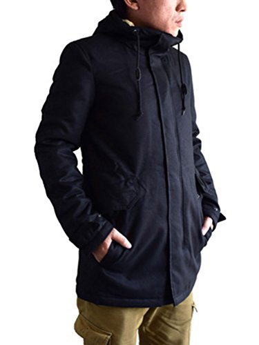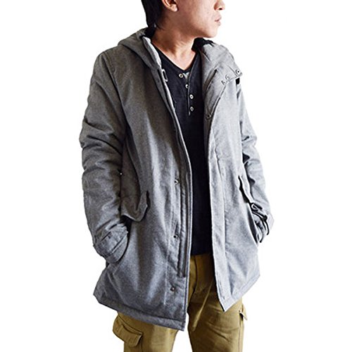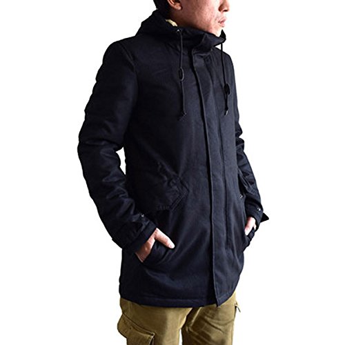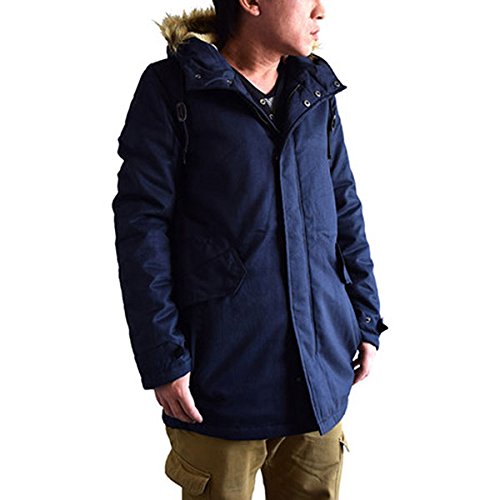-. Title : フード裏ボア脱着ファー付き中綿入りヘリンボン起毛モッズコート