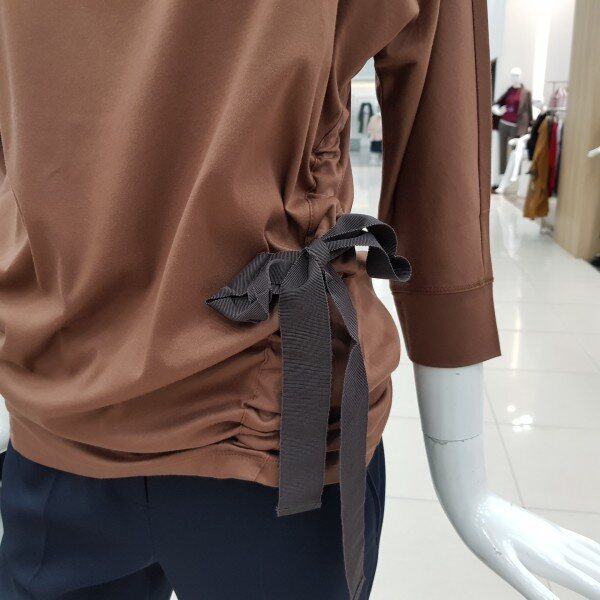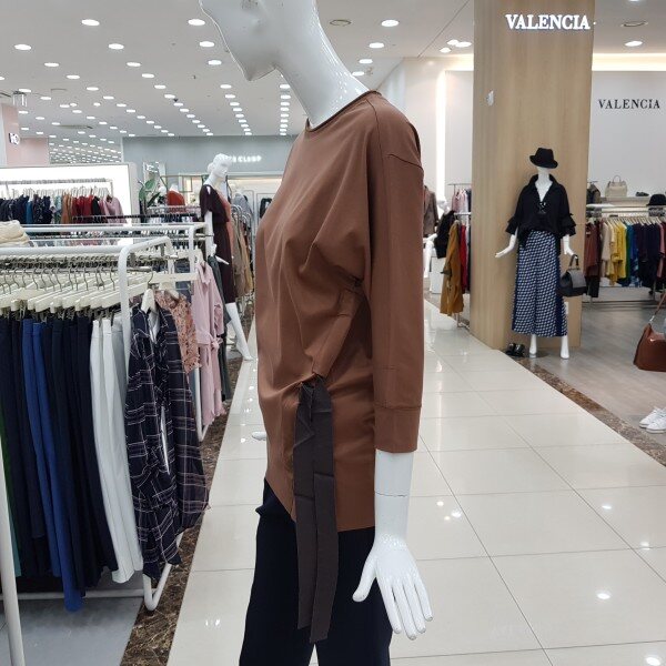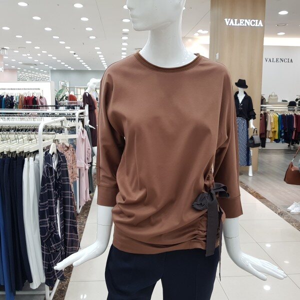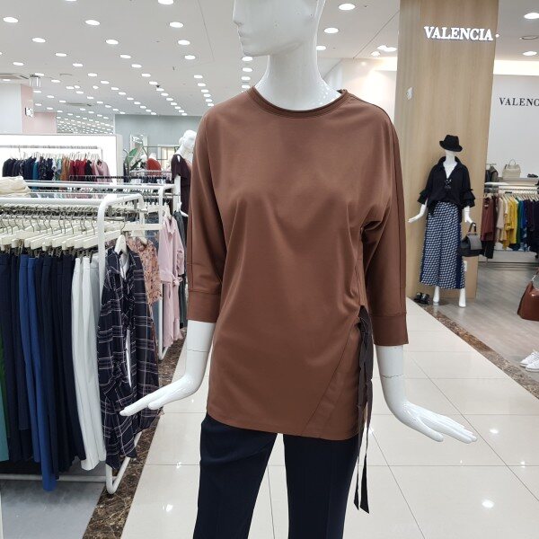 옆선에 셔링을잡아서 기장을조정할수있는 세련된 7부티셔츠
