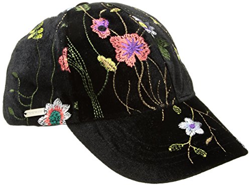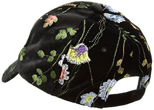 Product DescriptionSteve Madden baseball cap with all over embroidered flowers and vines and Steve Madden metal logo plate on side0