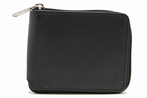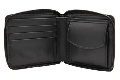 -. Title : Men's Minimalist Genuine Calf Leather Zipper Bi-fold Wallet Key Holder Dawson with Gift Box (53-25)