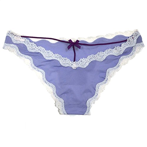-. Feature : Front and back bows. / Low rise. Minimal back coverage / Elastic rouleau strap forms T-back above back cutout / Allover lace trim / Imported nylon/spandex