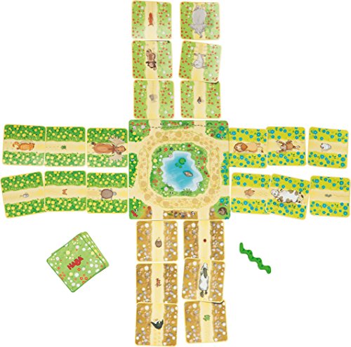 Studio : Haba Publisher : Haba Binding : Toy Product Description The snake cheerfully creeps along, but suddenly -- someone trudges down her back! Whose feet were those? Players mimic the animals' movements using their fingers and hands on the backs of other players. Whoever guesses the most animals and can cleverly imitate the animal's walking style wins the game. A fun animal guessing game for 3-5 players ages 6-99! 0