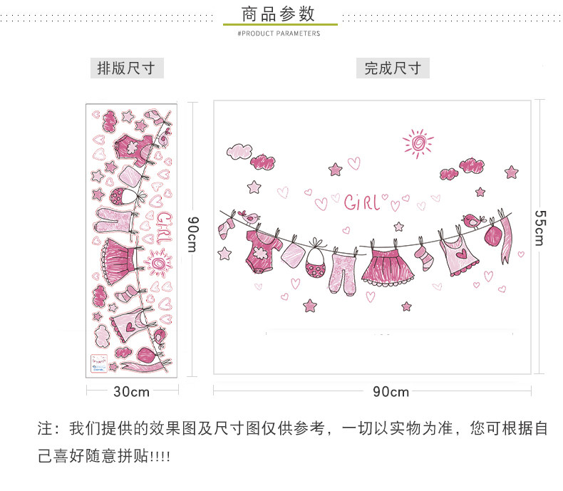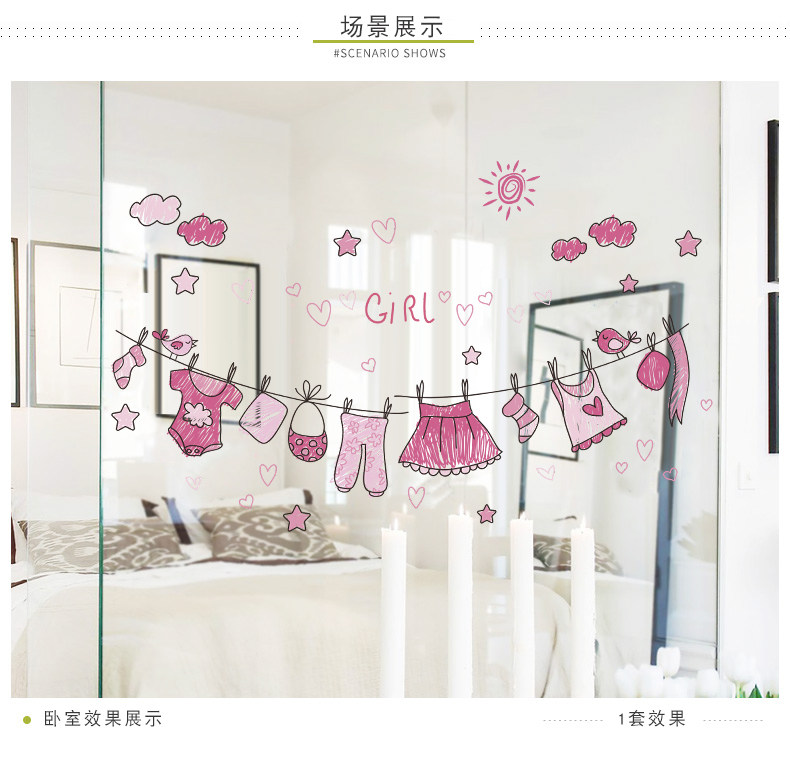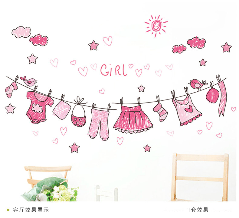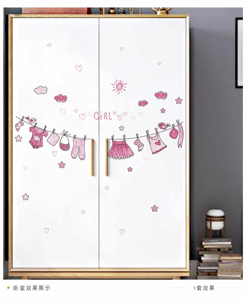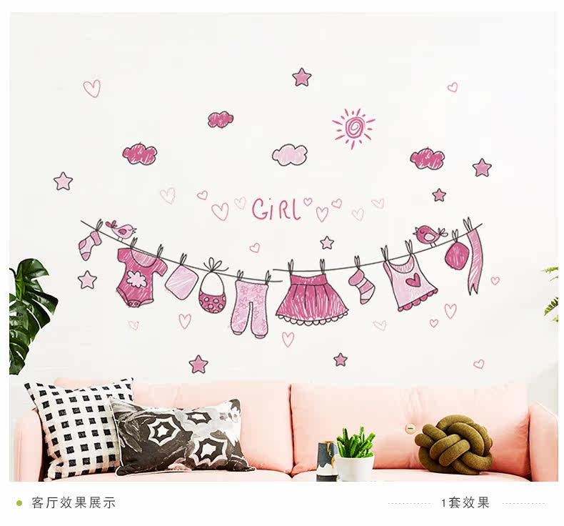 可爱粉色少女心家居墙贴装饰卧室客厅衣柜背景贴纸环保可移除贴画