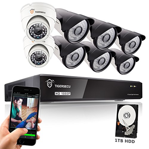 -. Title : TIGERSECU 1080P 8-Channel Video Security Camera DVR System, 1TB Hard Drive - Six 2.0mp Outdoor and Two Indoor Cameras, 100ft/50ft Night Vision (White)