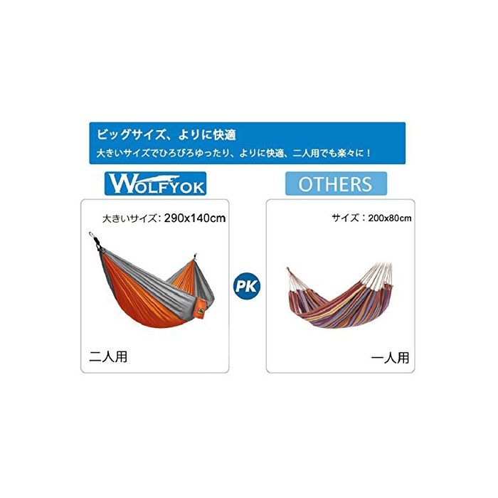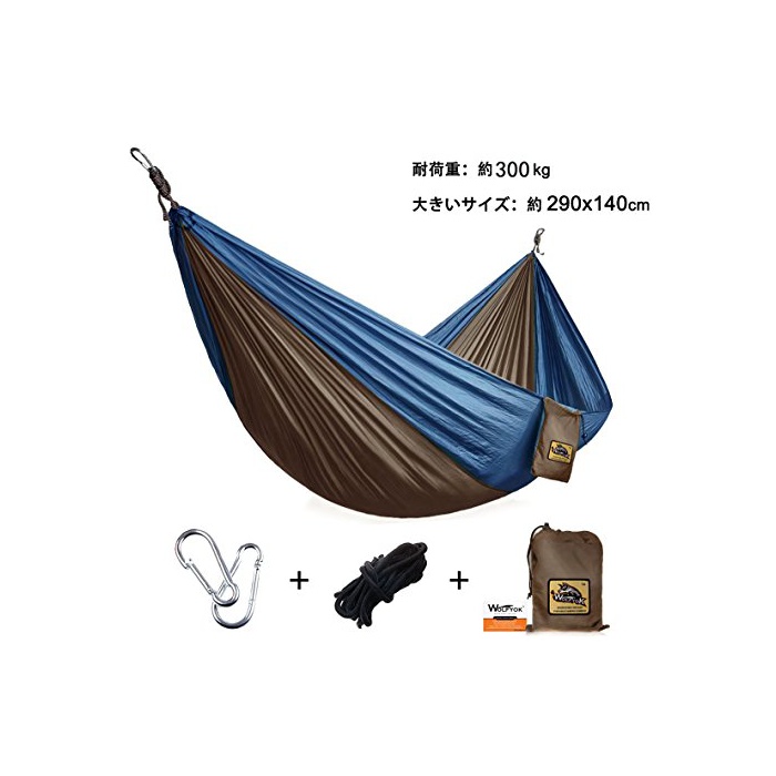 원본상품명: ハンモック (2人用) Wolfyok(TM) パラシュ?トハンモック (140*290cm) ?量 幅? ロ?プ+カラビナ+?納袋付き キャンプ アウトドア ブル?&ブラウン