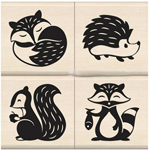 -. Title : {Single Count} Unique & Custom (1.5" Inches) "Cute Happy Woodland Forest Critters Scene" Square Shaped Genuine Wood Mounted Rubber Inking Stamp [Small Size]