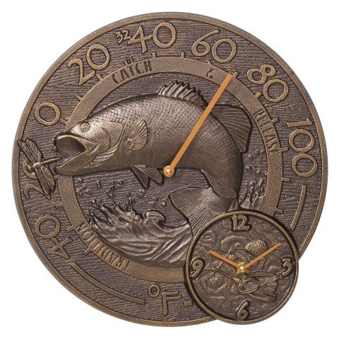 Bass Thermometer Clock - Antique Copper, Made in United States, Made of Aluminum, Color: Antique Copper.