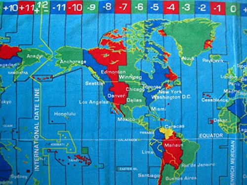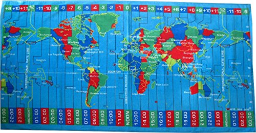 World Time Zones Caribbean Blue Color Velour Beach Towel 30x60 Inches