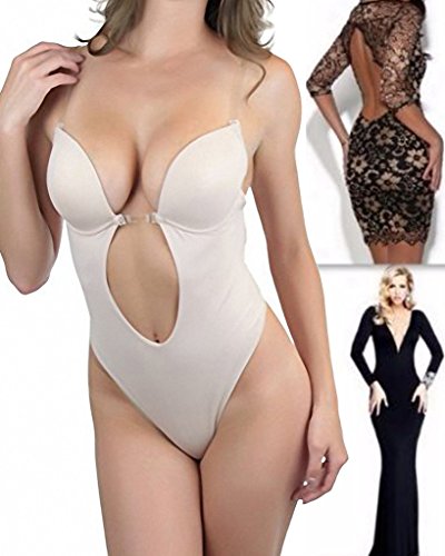 -. Feature : This body suit with open back and thong.For coverage with no seams or straps in sight,build a foundation under your most challenging dresses with this low-plunging body suit by Fashion Forms. / Clear,detachable,adjustable straps can attach at any point along back to accommodate different fashions.Contour,demi,underwire cups with soft felt interior,enhance the breast to give you extreme cleavage. / Low V-neckline plunges below belly button and features clear removable strap at center front.Extra lining at seamless front panel.Seamless edges disappear under tops and dresses.? / It has gel strip along the edges so the garment will not move and 4 loops each side for straps adjustment,great for wedding gowns,bride's maids, proms too.And it is thinly padded underwire cups. / Please Check Our New SIZE CHART On the left Size PICTURES. Choose the Size Based on Your Waist Size.