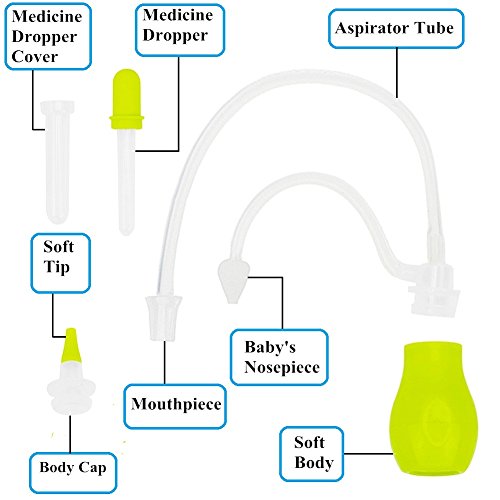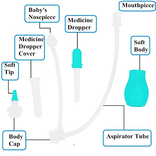 -. Feature : PREMIUM QUALITY - Our baby nose aspirator is made of BPA-Free,LFGB approved, FDA approved silicone that is safe, effective and hygienic / INSTANT CONGESTION RELIEF FOR YOUR BABY - Relieve baby's nose congestion caused by Flu's, Dusts, Colds and Allergies quickly and easily in 30 seconds or less to help your baby breathe, sleep and eat well again / WON'T IRRITATE/HURT YOUR BABY'S NOSE - Unlike bulb syringe, the soft silicone tip is designed to fit comfortably into your baby's nose without worrying about hurting baby's nasal passages / COME WITH A MEDICINE DROPPER/FEEDER - The medicine dropper help mom to feed baby with medicine, water or milk easily to prevent baby from vomitting or chocking / EASY TO CLEAN AND REUSUABLE - This baby nasal aspirator is suitable for 0~3 years old baby;Just wash it with warm water before and after using, then dry it
