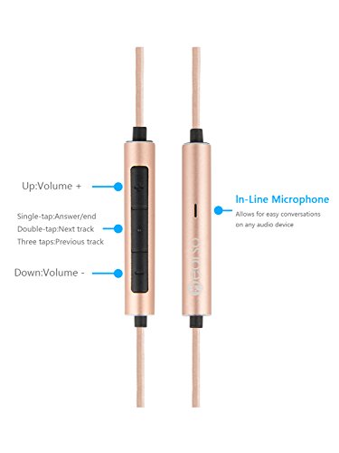 Hearso Stereo Bass Earphones,Wired In-Ear Noise Isolating Headsets Dynamic and Balance Armature Headphones with Mic & Volume Control(M1 Rose Gold)