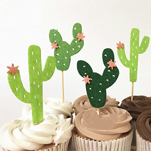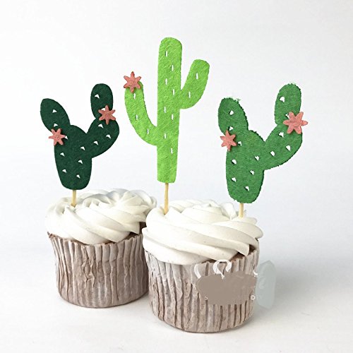 Astra Gourmet 24 pcs Cactus Cacti Cupcake Toppers Green Festive Party Theme Birthday Baby Shower Summer Holiday Party Decorations