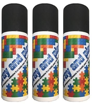-. Binding : Toy -. Brand : Spray and Play -. EAN : 0645789979590 -. Feature : 2.5 oz., Non-toxic Dries clear, washes off with warm soapy water / Use on modular playing blocks (e.g. ), puzzles, models, and more! / Dries clear, washes off with warm soapy water / Made in USA! -. IsAdultProduct : 0 -. Label : Spray and Play -. Manufacturer : Spray and Play -. ProductGroup : Toy -. ProductTypeName : TOYS_AND_GAMES -. Publisher : Spray and Play -. Studio : Spray and Play -. Title : Spray and Play Adhesive 3-Pack -. UPC : 645789979590