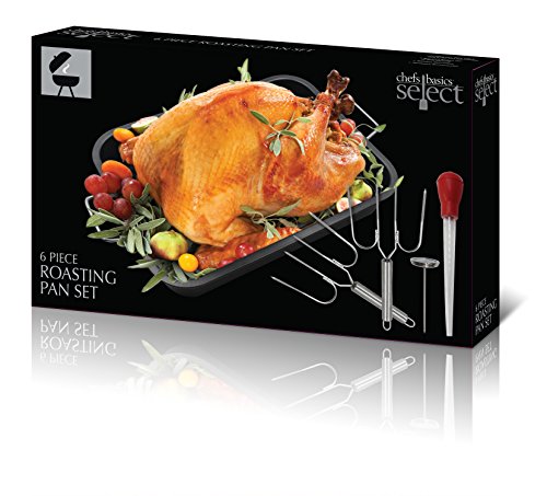 Chefs Basics Select 6-Piece Roasting Pan Set with Rack & Lifter Baster Thermometer
