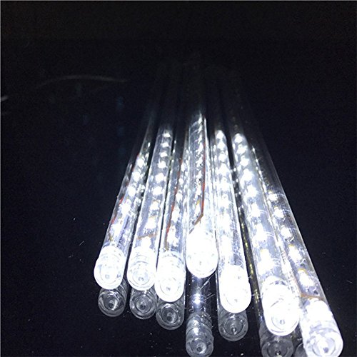 - Meteor Shower Falling Rain Lights Specs: Tube length 30cm / 11.8in , Tubes quantity: 8 tubes , leds of per tube: 18 , total number of LED bulbs: 144 leds , wire length between two tubes: 30cm / 11.8in ,color:white