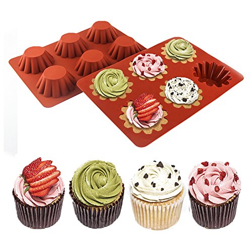 AVOVAFIT Silicone Bakeware Set Mold 4 Pack:Non-Stick 6-Cup Muffin Pan, 24 Pcs Cupcake Liners, 1 Pair of Cooking Baking Gloves + 1 Spreader Spatula(Gift)