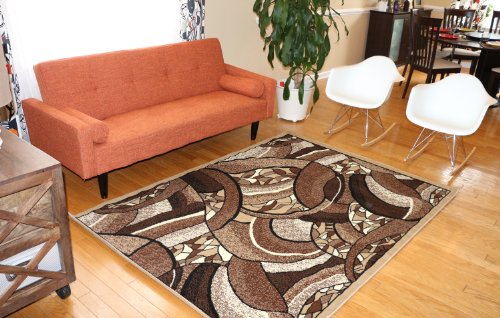 (Generations)/Furniture Decor/Home Decor/DIRECT FROM USA/Generations Brand New Contemporary Brown and Beige Modern Square and Circles Area Rug 7'10 x 10'5