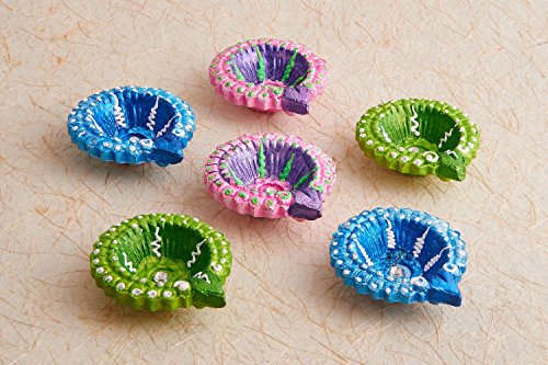 Set of 6 Diwali Decorations Colorful Oil Lamp Diya For Pooja/Puja Home Decor (Multicolor4)