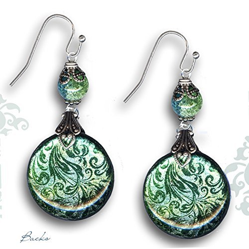 -. Title : Luna Moth Shimmerz Earrings - Two Sided Glass Earrings - Nouveau Jardin Collection by Tzaddishop - Shimmering Luna Nightwing