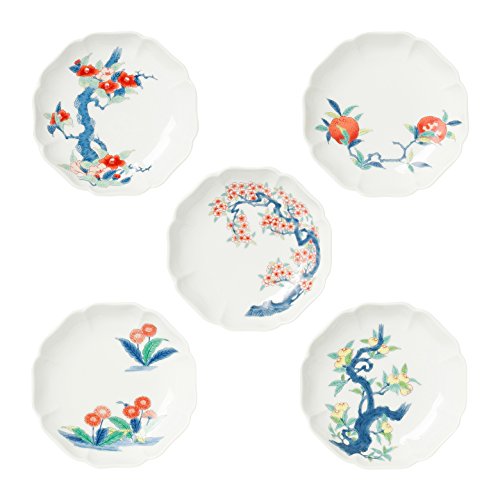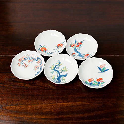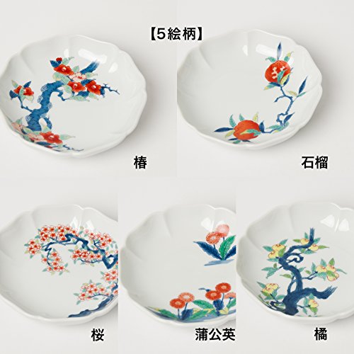 송화당 아리타산 도자기색 나베시마 작은 접시5 개세트(동백나무/석#/벚꽃/부들공영/귤나무) 12cm 아리타 포세린 래보러터리 ars1791
