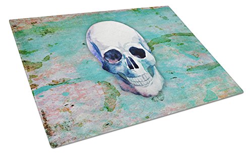 Caroline's Treasures Day of The Dead Teal Skull Glass Cutting Board Large, Multicolor