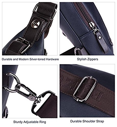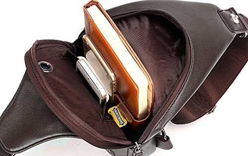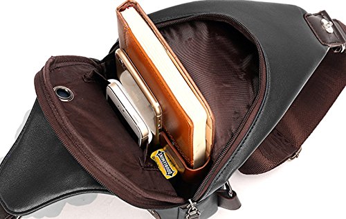 -. Feature : Dimension Size:H12.2"*W1.9"*L6.6" 0.43kg/ 0.9 lb / Structure: 2 zipper pockets outside. 1 main pocket. 1 zipper pocket and 1 open pocket inside / Function :Unique earphone line hole(You can listen to your favorite music on the go hands-free),Removable, adjustable crossbody strap, right-shoulder/left-shoulder reversible / PU leather sling bag.It is easy to alternate the strap from left to right or reght to left. NOTE:this chest bag can't hold IPAD, theftproof buckle(can carefully protect your P.R.Ivate items) / 100% LIFETIME WARRANTY: If you don't like your sling bag or whatever, we'll instantly give you a full refund or exchange a new sling bag, no questions asked