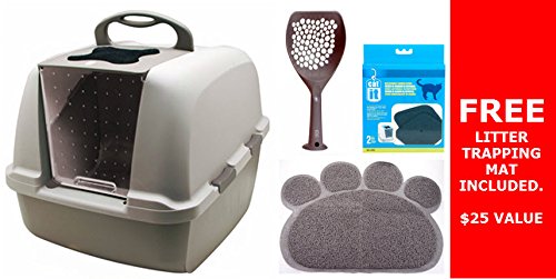 - Feature : Deluxe Jumbo Cat Pan Kit. Dimension when assembled is 22"L x 20"W x 18"H / Includes: Jumbo Pan, Litter Trapping Mat, Litter Scoop & 2 Extra Carbon Filters / Provides your cat with privacy while retaining their litter inside the pan / Large hood lifts up for easy access for cleaning / Perfect for multi-cat households