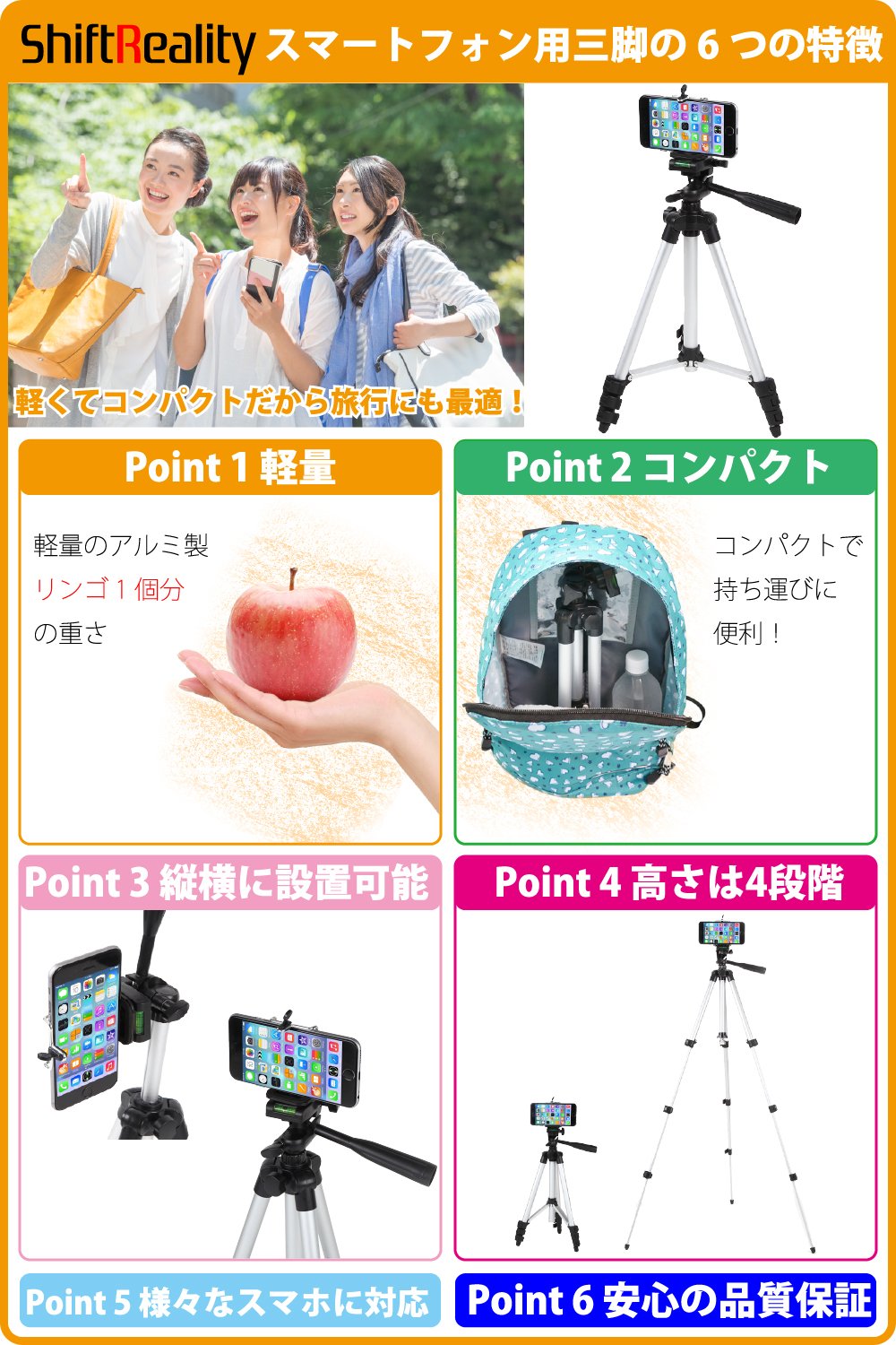 A tripod for a smartphone that is convenient to carry.