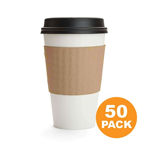 -. Title : 16オンスホット飲料使い捨て用紙コーヒーカップ蓋、スリーブコンボ、ホワイトブラッククラフト、M Grande [ 50パック]