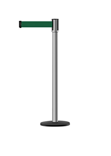 Tensabarrier - 890B-33-3P-3P-MAX-NO-G7X-C - polished stainless post, 2" wide, 13' length Dark Green belt