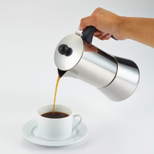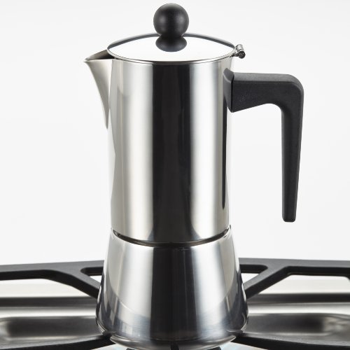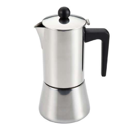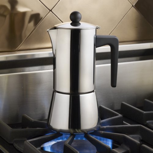 Brew rich, full-bodied espresso without costly high-tech machines using the BonJour Coffee Stainless Steel 6-Cup Stovetop Espresso Maker. Then share hot, fragrant European-style espresso with friends, just as Italians have for generations, using this fuss-free brewing system. Made of durable stainless steel, the espresso maker boasts a classic modern design. It's crafted with an attractive contoured handle and the attached lid features a whimsical coffee bean knob. Fill the base with water, put delicious espresso-ground roast into the filter, drop it into the base opening, screw the upper half onto the threads and gently bring it to a boil. The flavorful coffee created with this stovetop espresso maker is ideal for sipping, making decadent iced coffee beverages, or adding to recipes such as tiramisu or chocolate mocha cupcakes. This stovetop espresso maker is a great complement to many other professional-quality items in the BonJour collections. Enjoy bistro-style coffee drinks at home with the BonJour Coffee Stainless Steel 6-Cup Stovetop Espresso Maker.Feature