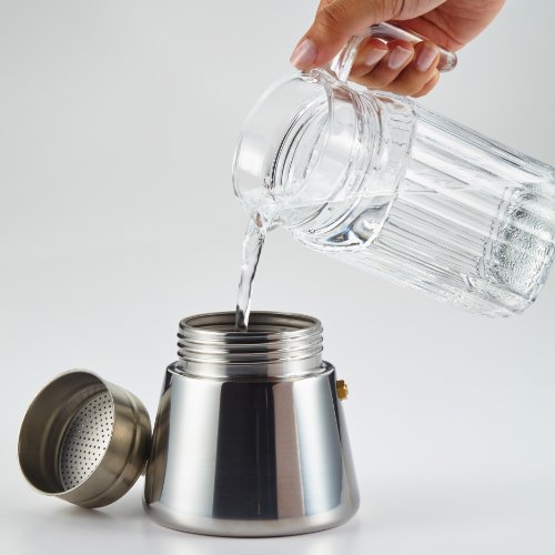 Crafted from durable stainless steel, the espresso maker features a classic Italian-style design