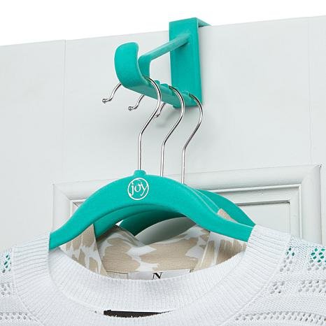 /EXTENDED OVER-THE DOOR HOOK: Can hold multiple hangers. Can hang on any door in your house. Ideal for hanging multiple articles of clothing, towels, scarves, robes, tote bags, handbags or your wardrobe for the week. Available in the complementary colors of Hable Hangers. Velvety surface prevents slipping and protects do