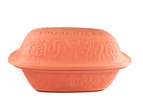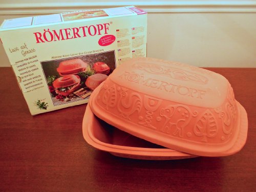 Let your modern appliances rest - the best way to get flavorful dishes is with a pot from the Roman era. Free of harmful impurities, this baker is made of porous clay that preserves vitamins and minerals while cooking. You can whip up delicious pork roast, stew, turkey and other healthy dishes without grease or fat in a Reston Lloyd 99113 Original Glazed Romertopf (Large). The top pot comes unglazed so that your food retains moisture and remains tender, while the glazed bottom is quick to clean. Ideally suited for 4-6 people, this easy to use system allows you to relax while it steams your food to perfection. Made of Impurity-Free Clay for Healthy Cooking Free of lead, cadmium, and other impurities, the porous clay construction is also perfect for preserving the vitamins and minerals that get lost in high-heat cooking. The moisture catching design allows you to cook without unhealthy fats, so that your food remains tender and flavorful minus the grease. Easy to Use With nothing to plug in or complicated design features to figure out, this simple steamer is easy to use. Just place the romertopf into a cold oven to heat gradually. When you're finished, wash it with warm water and sponge, and then dry immediately. Classic Romertopf 4-quart baker for up to 14 pounds of food; suits 4 to 6 people Porous clay construction free of harmful impurities; soak prior to use for enhanced moisture With shaped handles on both ends of the baker; lid contains steam, flavor, and nutrients Wash by hand and dry immediately; avoid exposure to harsh cleansers and sudden heat changes Made in Germany, baker measures 16 by 11 by 8 inches; 11-pound shipping weightFeature