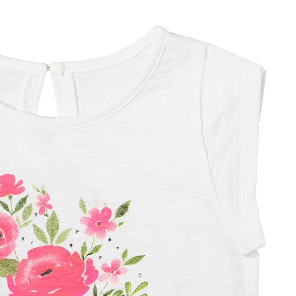 상세설명-면소재로 착용감이 편안하며 꽃프린트가 있어 화사한 느낌의 반팔티셔츠입니다.