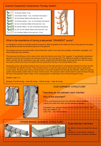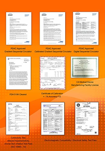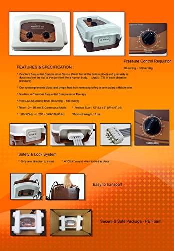 Gradient Squeezing Compression Mode (Proven to be the Best for Blood, Lymph Circulation Therapy. Pressure: 20 ~ 100 mmHg, 60 min Timer), Quick & Easy to use Connector w/Safety & Lock System
