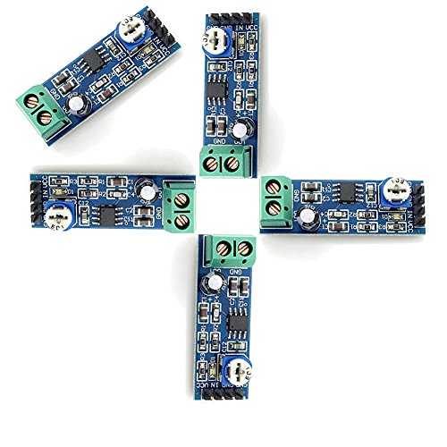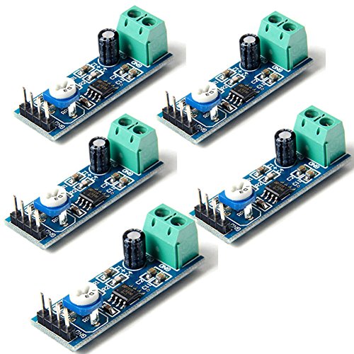 LM386 Audio Amplifier Board 5-12V ,10K adjustable resistance Mono Audio Amplifier Module 200 times Signal amplification ,Mini Size 41mmx13mm ( 5 pack)