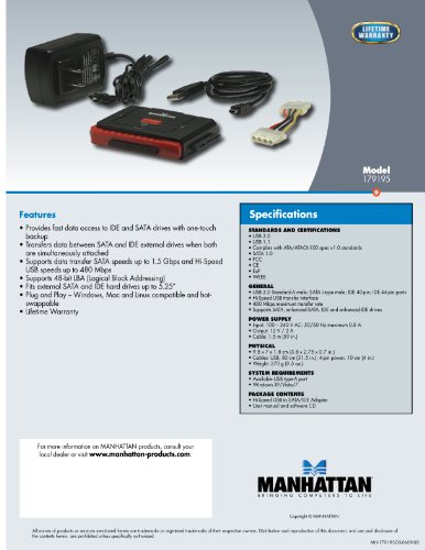 Manhattan Hi-Speed USB to SATA/IDE Adapter 3-in-1 with One-Touch Backup (179195)
