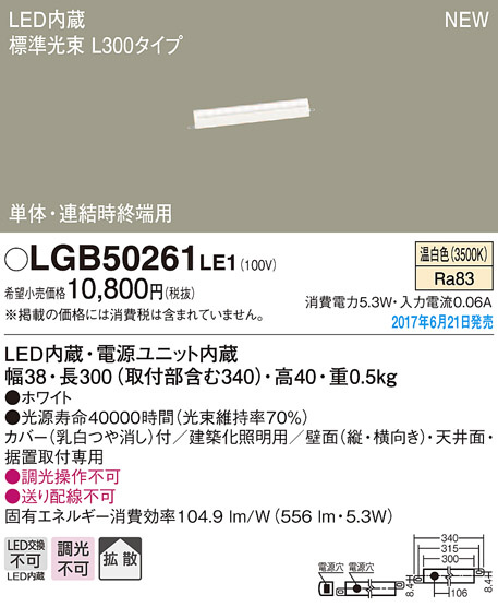 ●寸法(mm):幅38・長300(取付部含む340)・高40