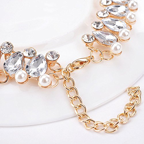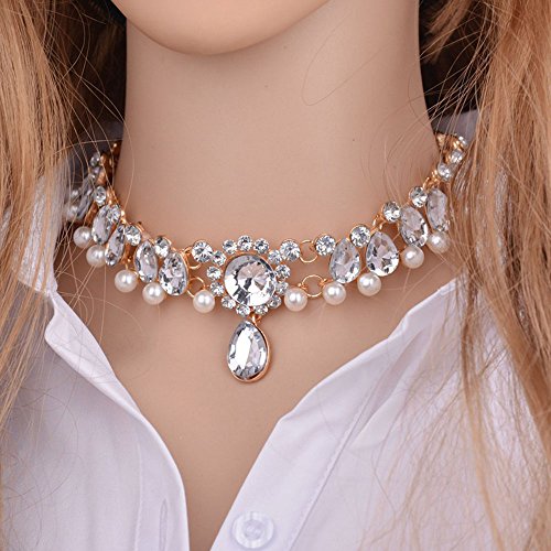 CrazyPiercing Fashion Womens Pearl Collar Crystal Diamond Chunky Choker Pendant Bib Necklace Gold