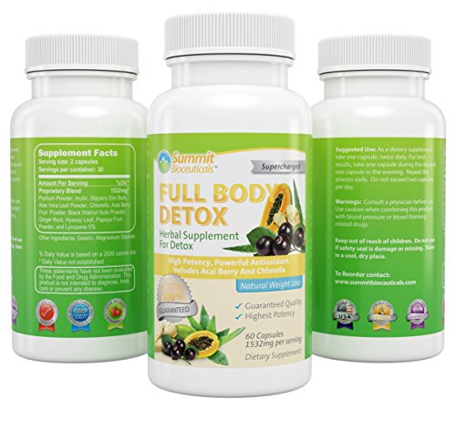 - Feature : MAXIMUM RESULTS! Our Detox Full Body Cleanse promotes the best colon, pancreas, liver, lung, prostate, skin, intestine, node, gland and kidney health! Optimizes digestive system function by using a smart and natural hydrotherapy program that uses probiotics to supplement your diet and weight loss plan - Promotes ultimate healthy weight loss! / ALL NATURAL - Standard organic and vegetarian liposom caps produced in the United States in a FDA registered laboratory! Non irritating and manufactured to meet GMP standards and FDA's strict guidelines for a pure product that you can trust! 13 powerful all natural ingredients including Acai Berry, Aloe Vera and other cleansers! / ELIMINATE WASTE AND TOXINS! Users report an overwhelmingly higher success rate over drinking lemon, green or mango tea recipe cleansers! Purify and detoxify your body for a more natural and healthy internal balance! Increase regularity of your colon by eliminating pounds of extra residue! Helps cleanse toxins and supports healthy bowel movements / PURE AND POTENT! No fillers or binders, providing not only effective natural laxatives, fiber and herbs, but also promoting healthy levels of bacteria in the intestinal tract - Our doctor-recommended recipe of nature's most potent ingredients to provide a premium product you can trust! Containing all-natural ingredients, giving your body more energy, reducing bloating, and giving you a happier healthier life! / WE GUARANTEE IT! Every one of our quality made products come with a 100% LIFETIME SATISFACTION GUARANTEE! So you can buy with complete confidence!